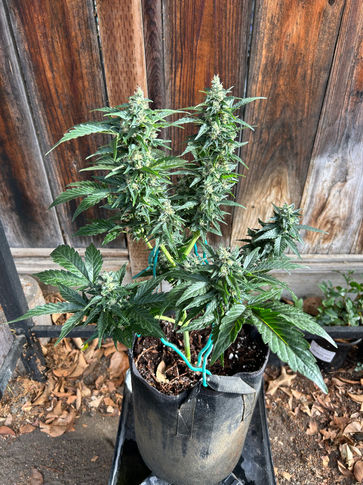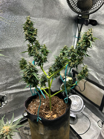 Started autoflowering at 4 weeks to my surprise (after transplanting and topping). WPM started to show before 7 weeks (total) on larger leaves, but still looked healthy.Tricomes on sugar leaves at week 8 (total). Defoliated aggressively to combat WPM. Sprayed spinosad and mold prevention spray. Not munched much by aphids despite its infested neighbor. Harvested at 11 weeks (total). Bud were small, not very dense, not many tricomes but a deep rich smell. Only netted 18 grams after tossing a few colas to make tincture. Polinated 1 branch to get 60 seeds from its strong autoflowering Carmalicious brother so the seeds should be autoflowers (aa x aa = recesive offspring)