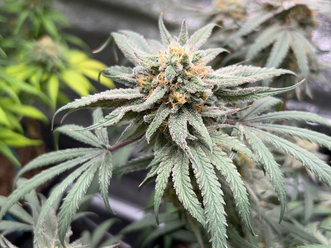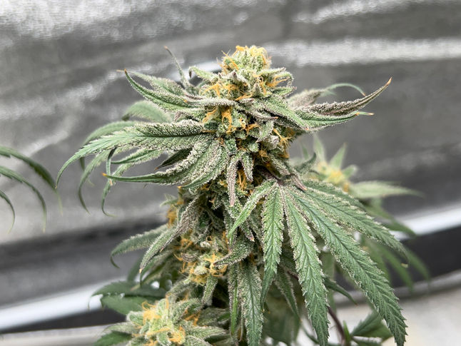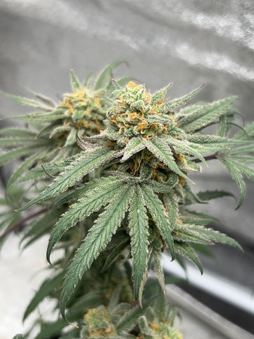 Was very light green colored througout the grow for no known reason. Otherwise healthy but slower grower. Smells strong like grape juice. Trichomes made long sugar leaves look feathery. Buds took slowest to develop and nearly 12 weeks of flower. Purple barely started showing under long sugar leaves at week 8. Week 10 Lookin so pretty. Velvety soft with trichomes. Best lookin buds award. Week 11 suddenly slipping into a purple hue. 3 days of darkness before harvesting by chopping and hanging in 3 sections in the open basement by the tent.