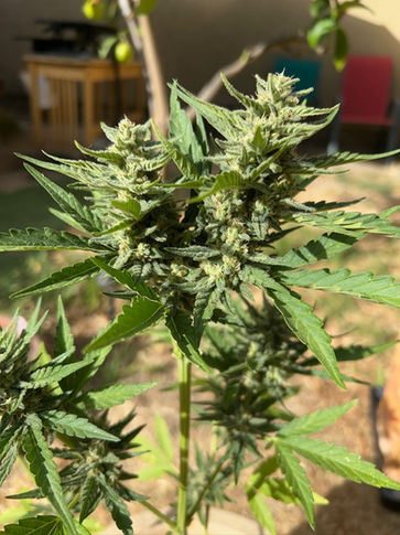 Great plant structure well spaced, easy grow (-bugs). Oudoor. Coco Loco / recycled soil / compost. Seed directly in soil outdoor germinated 92f 4 days. Seedlings amazingly did fine in 100f heatwave with strawberry crate shade.I topped late at 21 days. Sugar leaves 28 days. Aphid clusters at 39 days. Joined by spider mites and thrips at 54 days. Sprayed 1/10 alcohol water mix all over. Chopped 61 days from sprout.